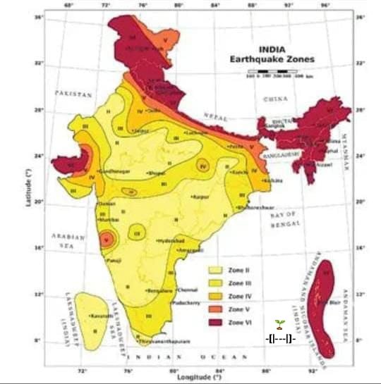 - Zone V: This is the highest risk zone, referred to as the Very High Damage Risk Zone. It includes the entire North-Eastern India, parts of Jammu and Kashmir, Himachal Pradesh, Uttarakhand, the Rann of Kutch in Gujarat, and the Andaman and Nicobar Islands.