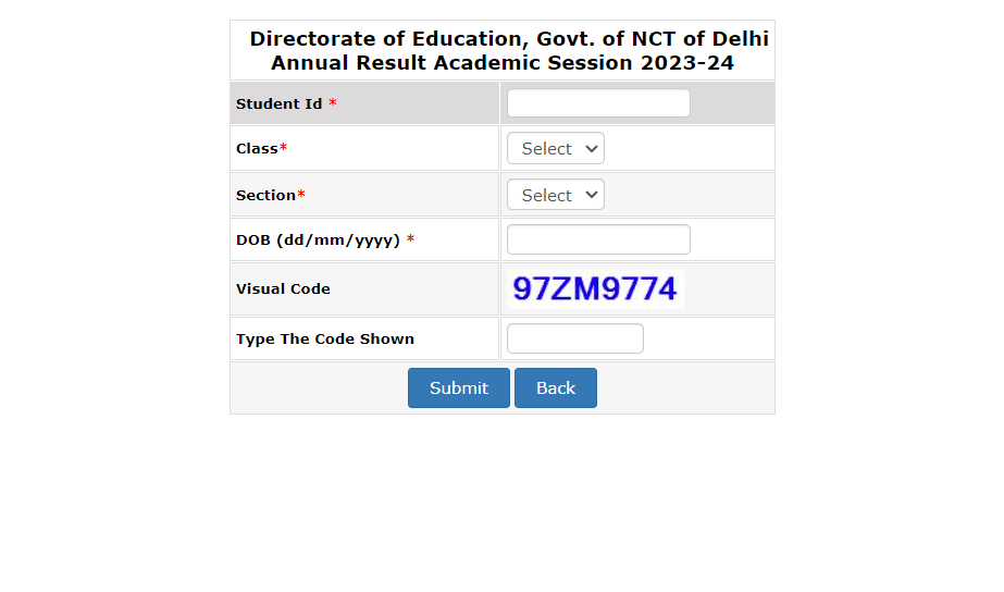 - Enter the required credentials, which typically include the Student ID, Class, Section, and Date of Birth.