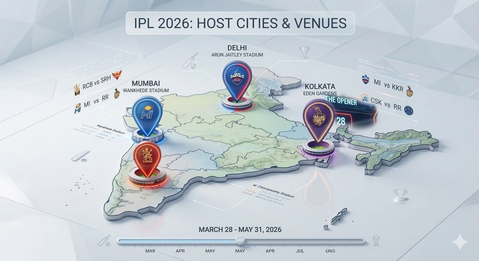 The BCCI has confirmed that matches will be hosted across 12 primary venues, maintaining the home-and-away format that is so crucial to the IPL's fan engagement. These include the established strongholds of Mumbai (Wankhede Stadium), Chennai (M. A. Chidambaram Stadium), Bengaluru (M. Chinnaswamy Stadium), Delhi (Arun Jaitley Stadium), Kolkata (Eden Gardens), Hyderabad (Rajiv Gandhi International Cricket Stadium), Jaipur (Sawai Mansingh Stadium), Lucknow (Ekana Cricket Stadium), and Ahmedabad (Narendra Modi Stadium).