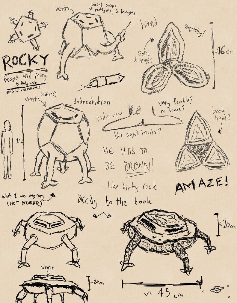 Ryland Grace gives the alien the nickname Rocky because the alien’s biology is based on minerals and he has a hard, stone-like exterior. His actual name in his own language is a series of musical notes.